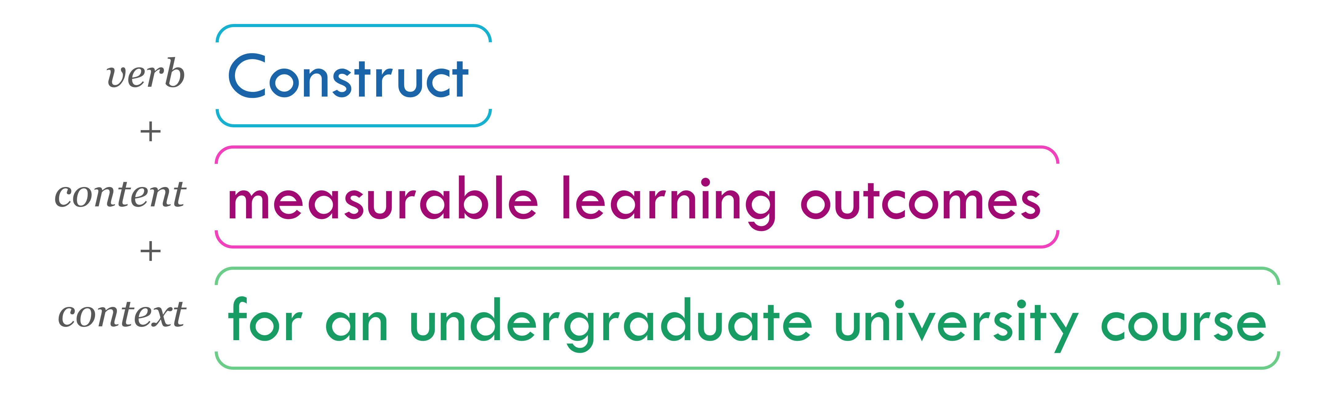 For the sake of this exercise, I’ll use “an undergraduate university course” as the context of our learning outcome. Here it is put together.